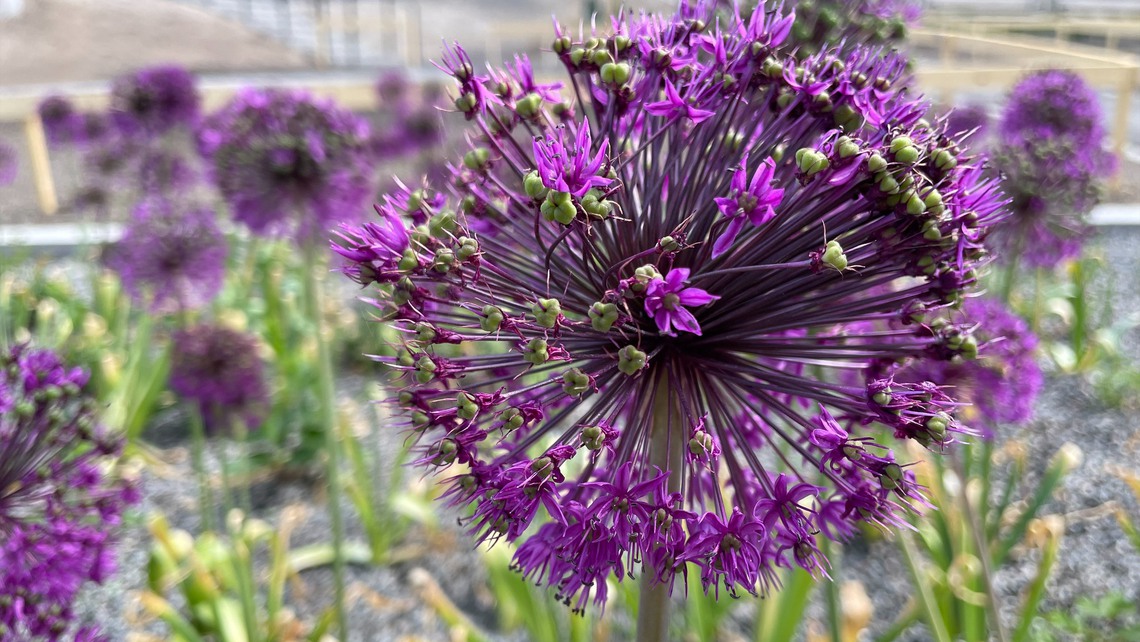 Genom parken går en lång perennplantering som fungerar som ett dike dit vattenmängder efter skyfall hamnar och sakta tas omhand av växterna.
