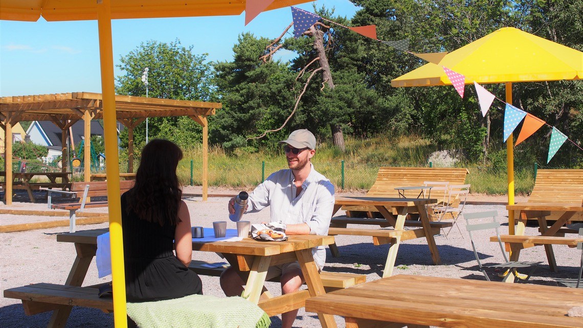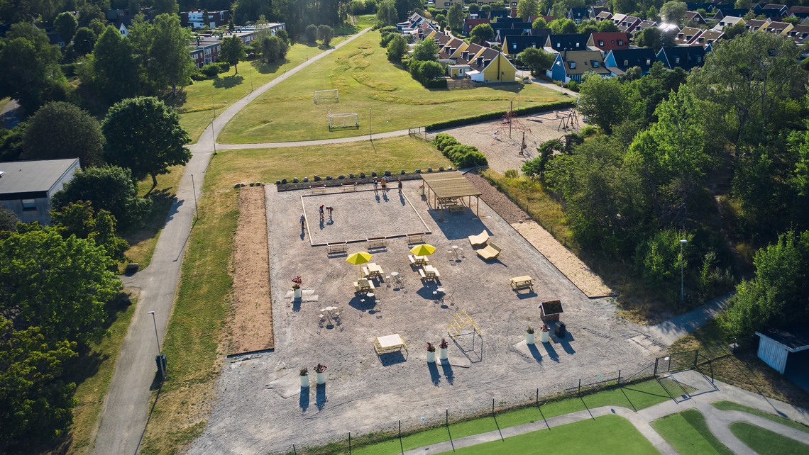 Välkommen till bouleparken i Enebyberg! En oas med solgula parasoll, bouleplaner och gott om plats för fika och umgänge.