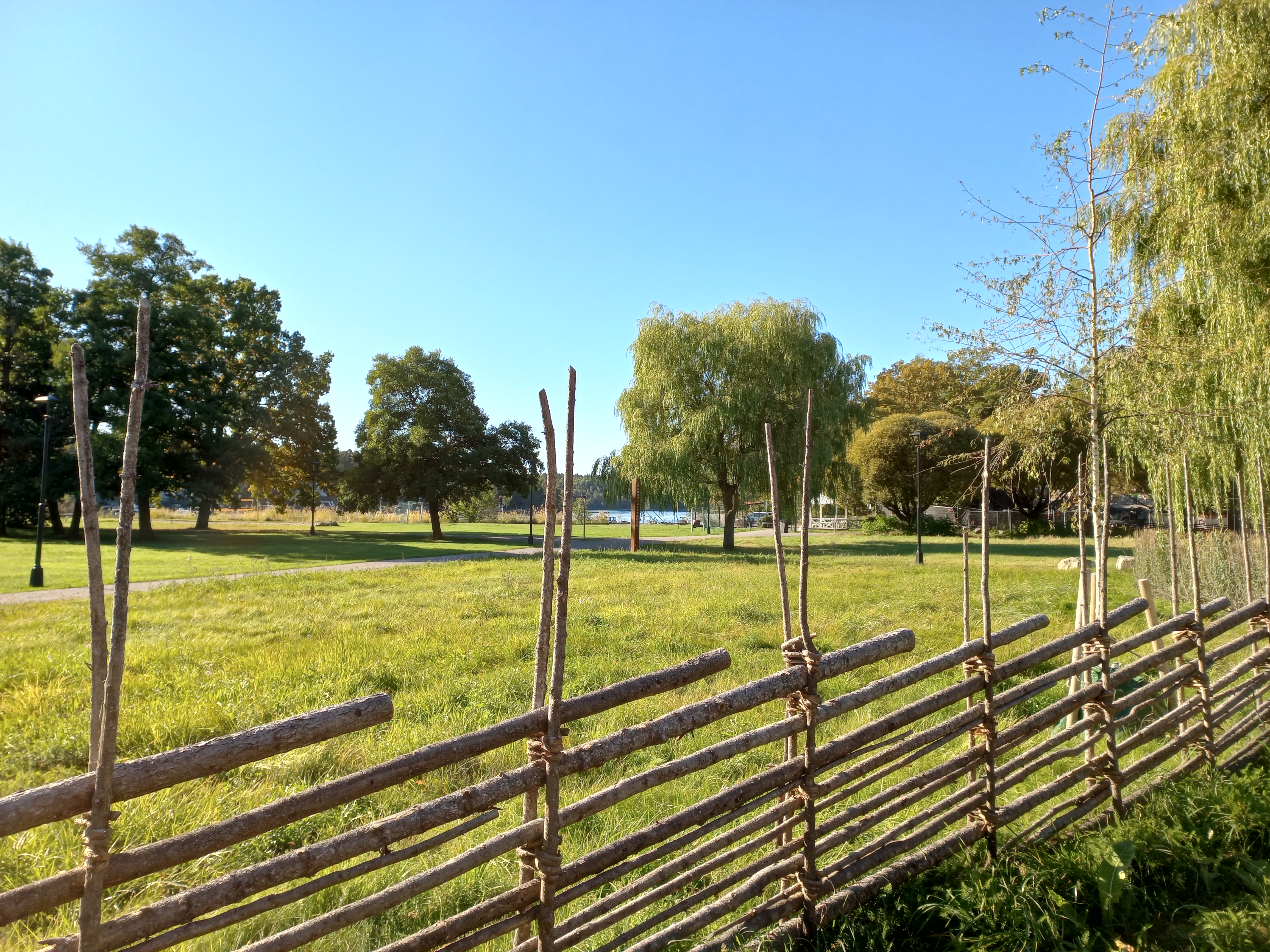En mindre lekplats med klätterställning och gungställning finns liksom volleybollplan och grillplats. I parken finns även tillgång till toalett. Parken karaktäriseras av dess vackra träd och klippta gräsytor, inramade av blommande höggräsytor som inbjuder till lek och spel, och fotbollsmål finns på plats under sommarhalvåret.