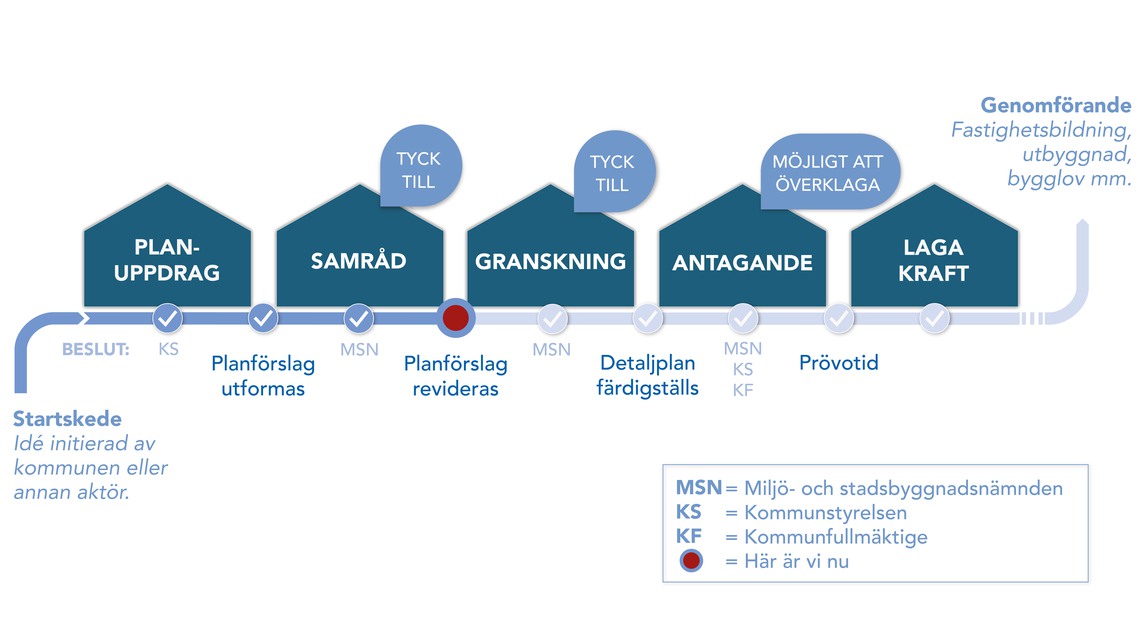 Därefter har det tagits fram ett nytt förslag till detaljplan som var ute på samråd hösten 2025.