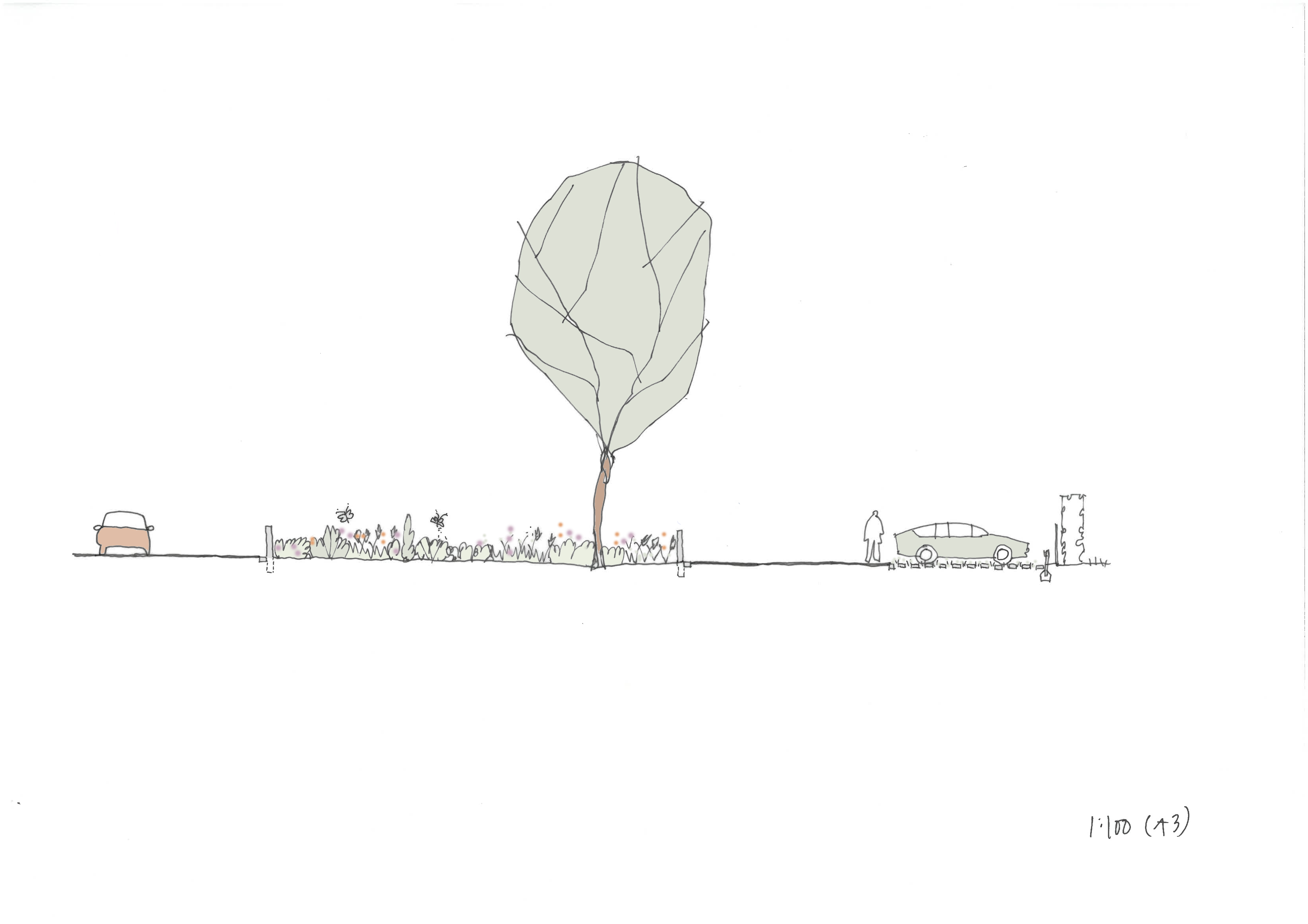 Under träden planteras växtbäddarna med buskar, perenner och lökväxter.
