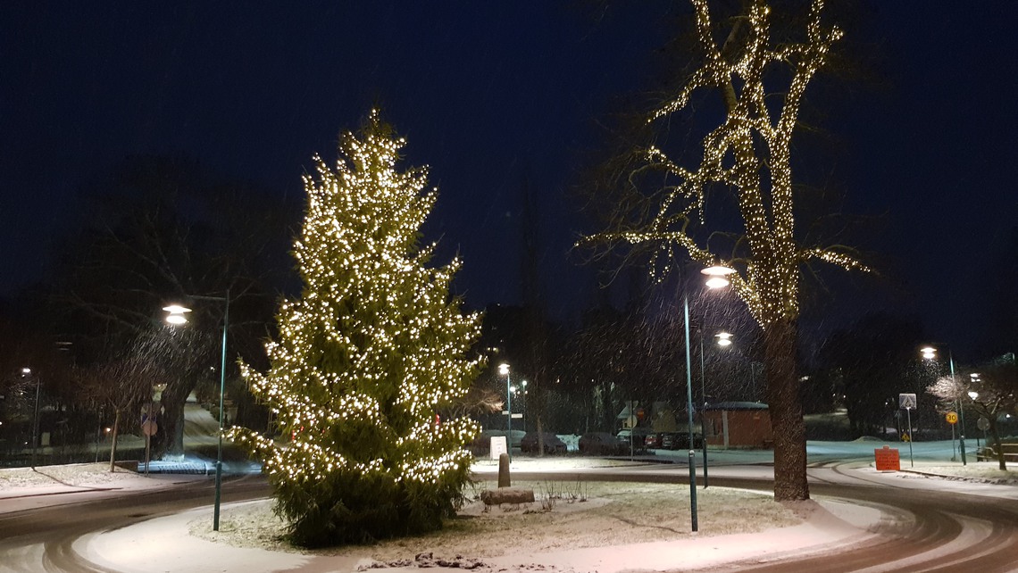 I rondeller och andra offentliga miljöer hittar du julbockar, paket, julrosetter och tomteluvor. Vi lyser också upp träd och rondeller på vissa platser med ljusslingor.