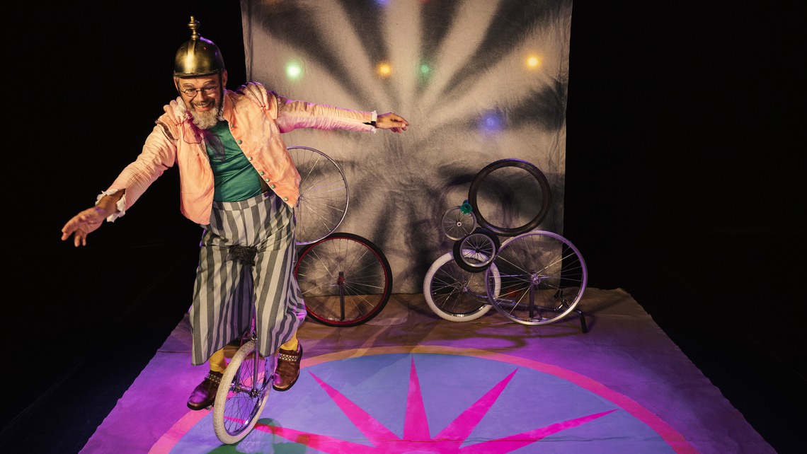 Genom teaterns lek, humor och rörelse gestaltas prövandet och övandet och triumfen som är gemensam för 3-åringen och 63-åringen: JAG KAN!