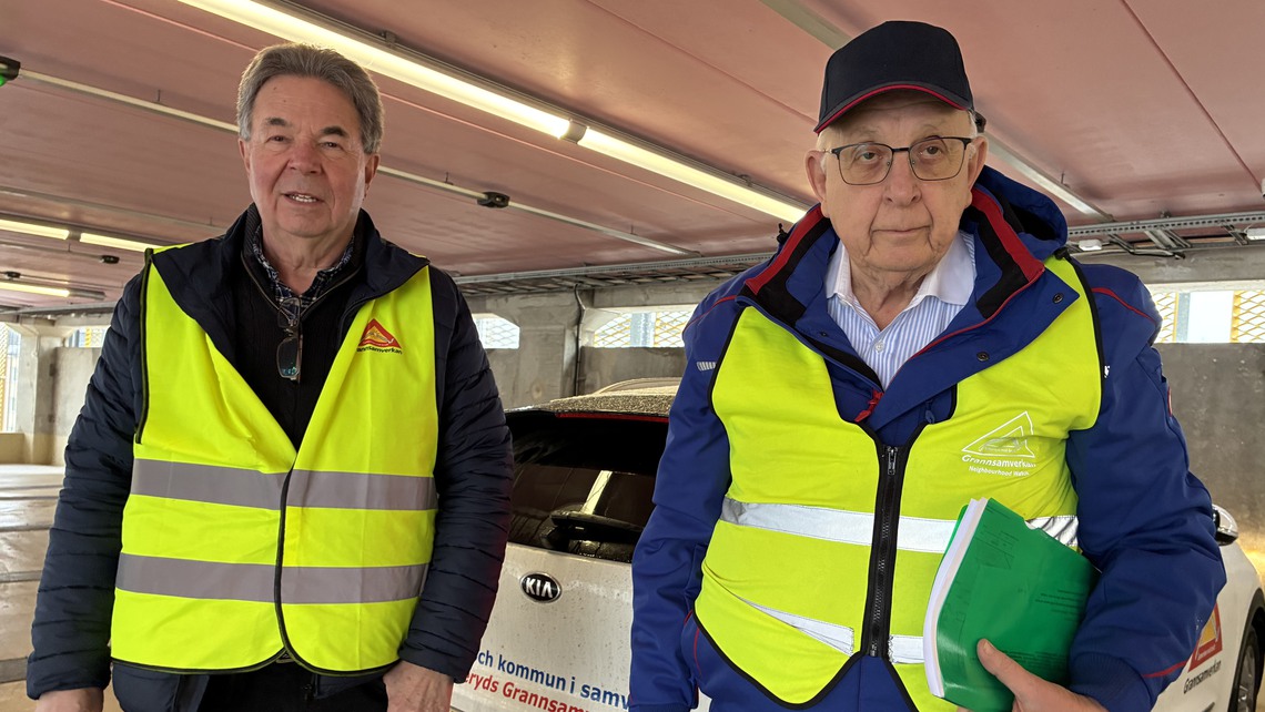 Tommy Edman och Magnus Francke beskriver att det viktiga i uppdraget med att köra grannsamverkansbil är att iaktta och att synas.